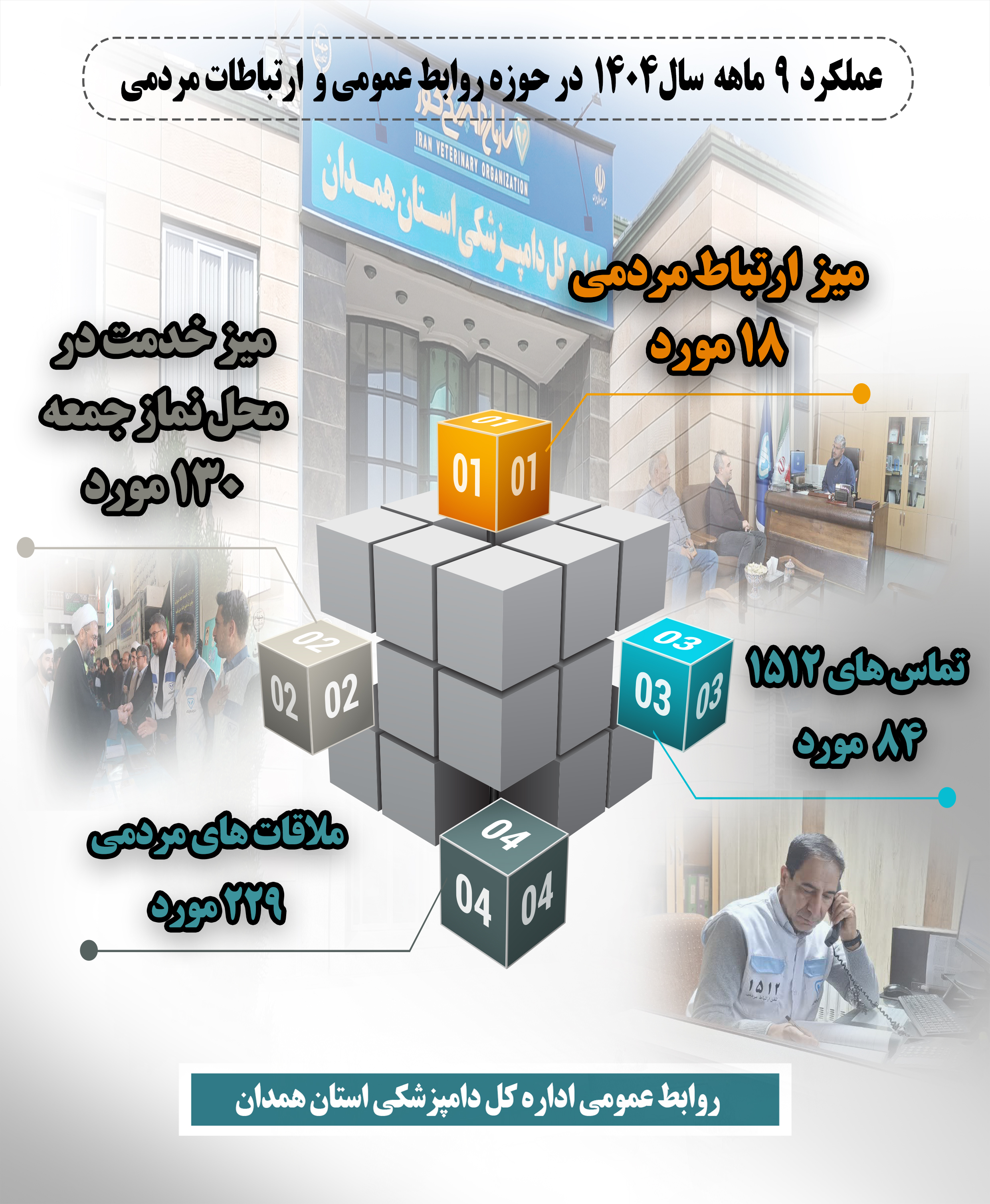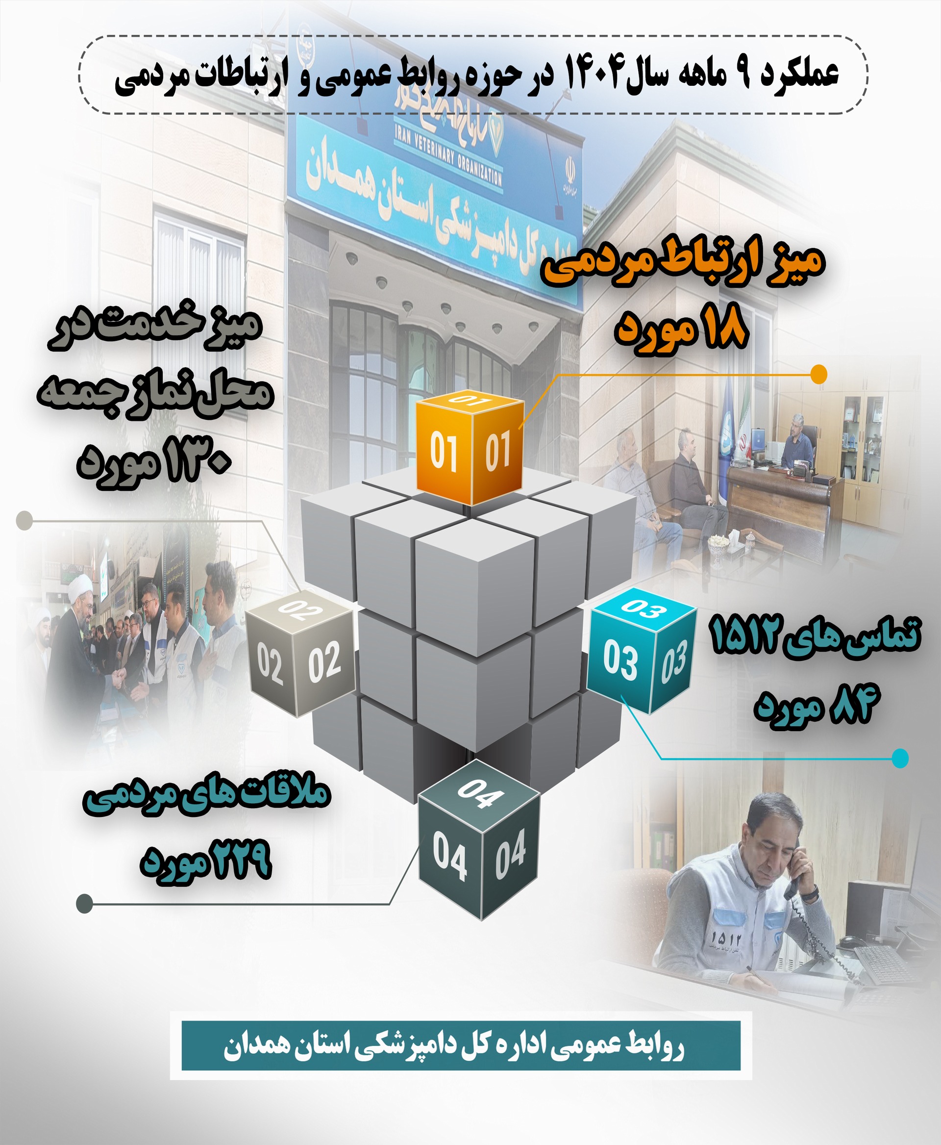 اینفوگرافیک عملکرد 9 ماهه سال 1404 در حوزه روابط عمومی و ارتباطات مردمی 1404/10/03 - 00:35 - تعداد بازدید: 38 - کد خبر : 349782 - گروه خبری : اخبار اسلایدر,روابط عمومی,عکس - تعداد نظرات : 0