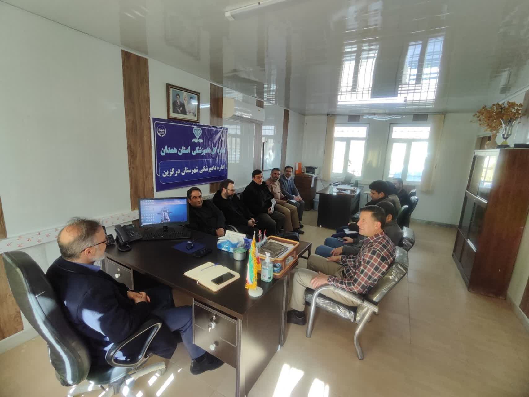 در راستای ارزیابی فعالیتهای انجام گرفته سالیانه ادارات دامپزشکی کارشناسان ادارات ستادی اداره کل دامپزشکی استان همدان از واحدهای اداره شهرستان درگزین بازدید کرده و عملکرد و مستندات موجود را بررسی و مورد ارزیابی قرار دادند