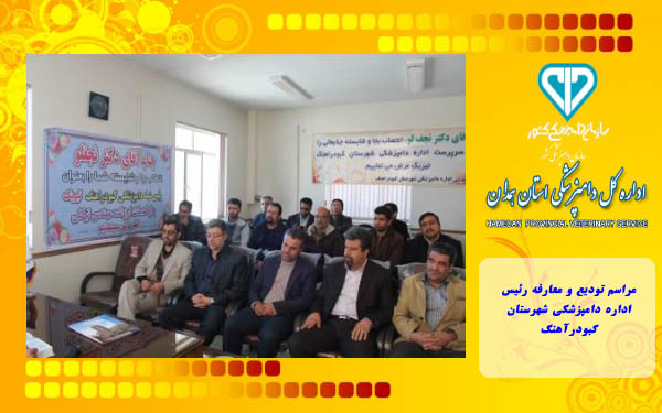 مراسم تودیع و معارفه رئیس اداره دامپزشکی شهرستان کبودرآهنگ 1398/12/09 - 13:11 - تعداد بازدید: 42 - کد خبر : 261601 - گروه خبری : عکس - تعداد نظرات : 0