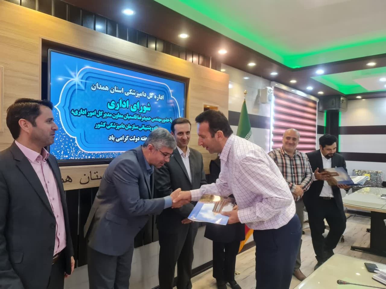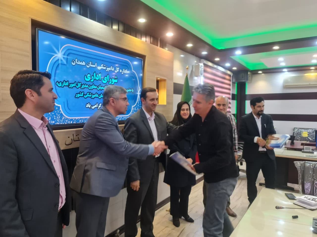 در پایان جلسه شورای اداری اداره کل دامپزشکی استان همدان به منظور قدردانی از تلاشهای بیدریغ کارکنان نمونه این دستگاه با اهداء لوح تقدیر از زحمات و خدمات ارزشمند ایشان تجلیل بعمل آمد.
