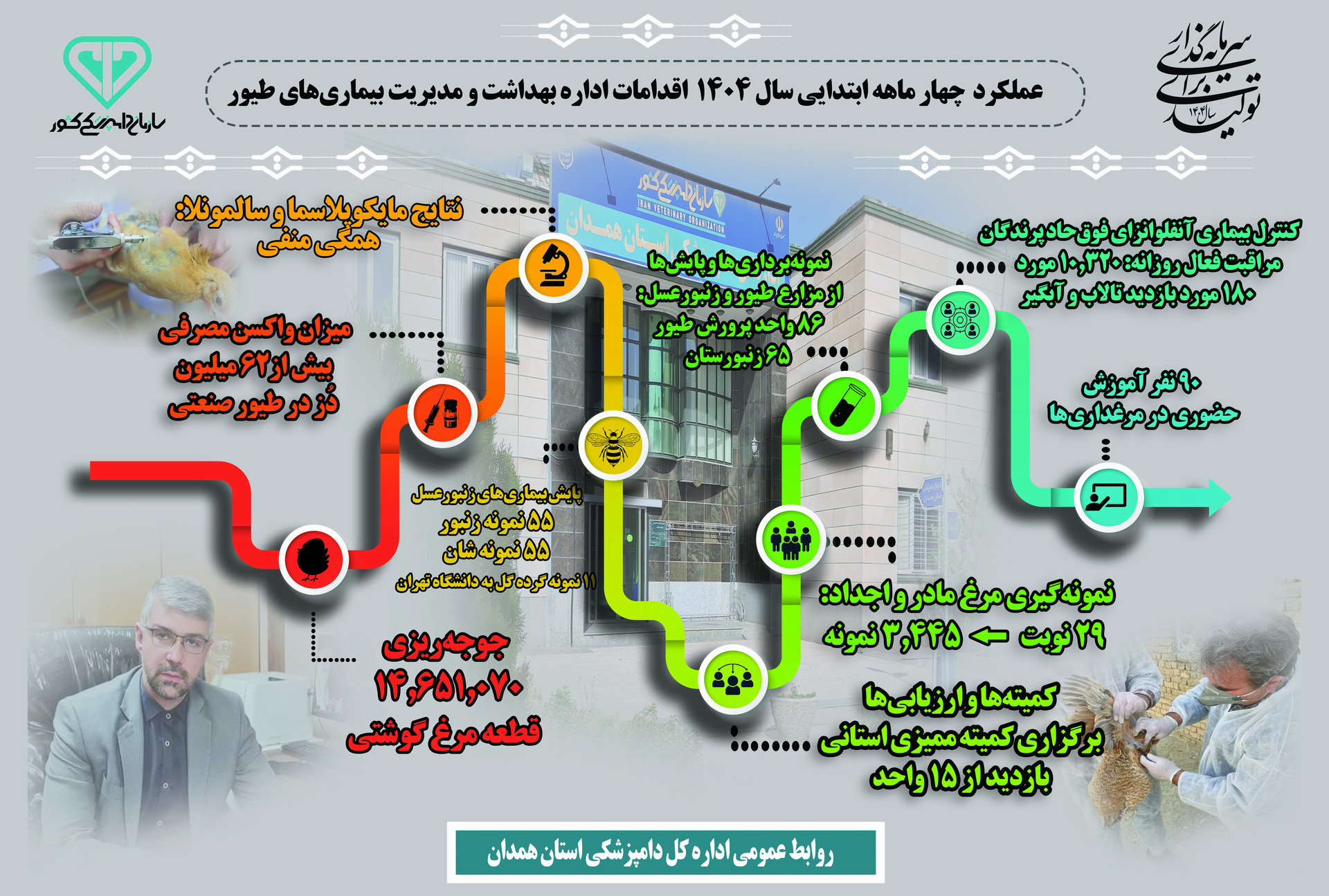 اینفوگرافیک عملکرد چهار ماه سال 1404در اداره بهداشت و مدیریت بیماری های طیور 1404/05/13 - 09:01 - تعداد بازدید: 10 - کد خبر : 343501 - گروه خبری : اخبار اسلایدر,اداره بهداشت و مدیریت بیماریهای طیور، زنبور عسل و کرم ابریشم,روابط عمومی,عکس - تعداد نظرات : 0