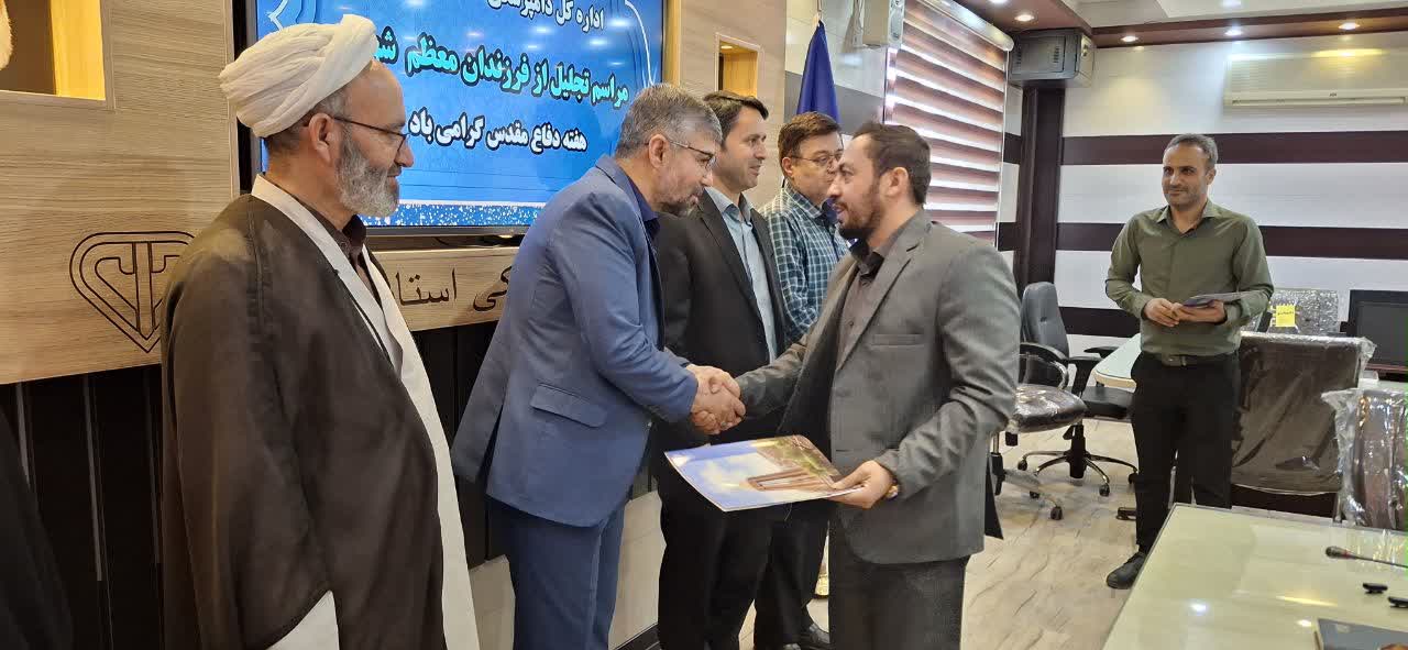 به مناسبت هفته دفاع مقدس و پاسداشت یاد و خاطره شهدای والامقام انقلاب اسلامی، طی مراسمی با حضور دکتر امیرحسین نقیپور، مدیرکل دامپزشکی استان همدان، از فرزندان معظم شهدا در اداره کل دامپزشکی استان همدان با اهداء لوح سپاس تجلیل به عمل آمد.
